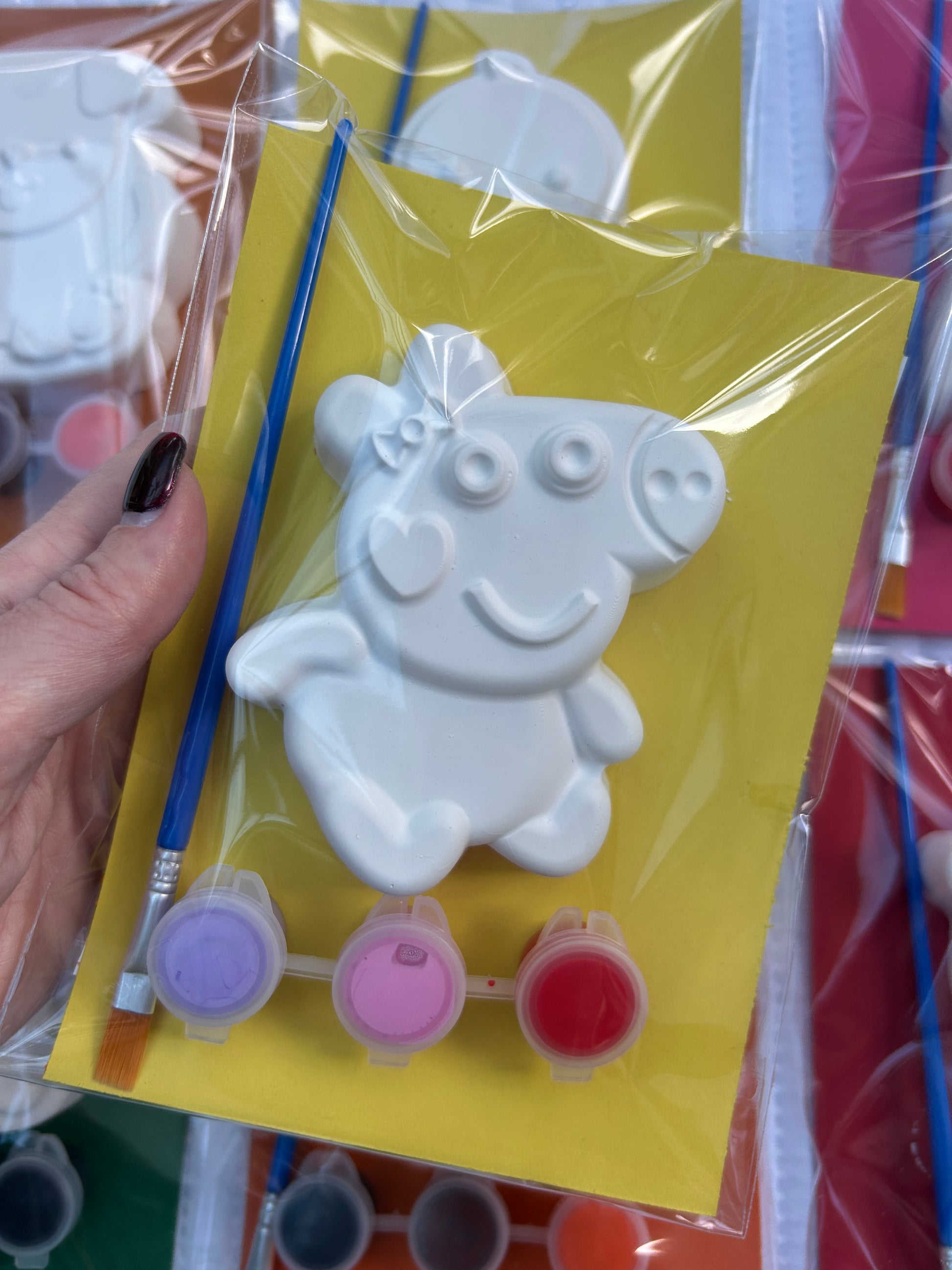 Each packed in a clear cello bag with coloured card backing to paint onto for less mess.