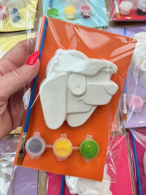 Each packed in a clear cello bag with coloured card backing to paint onto for less mess.