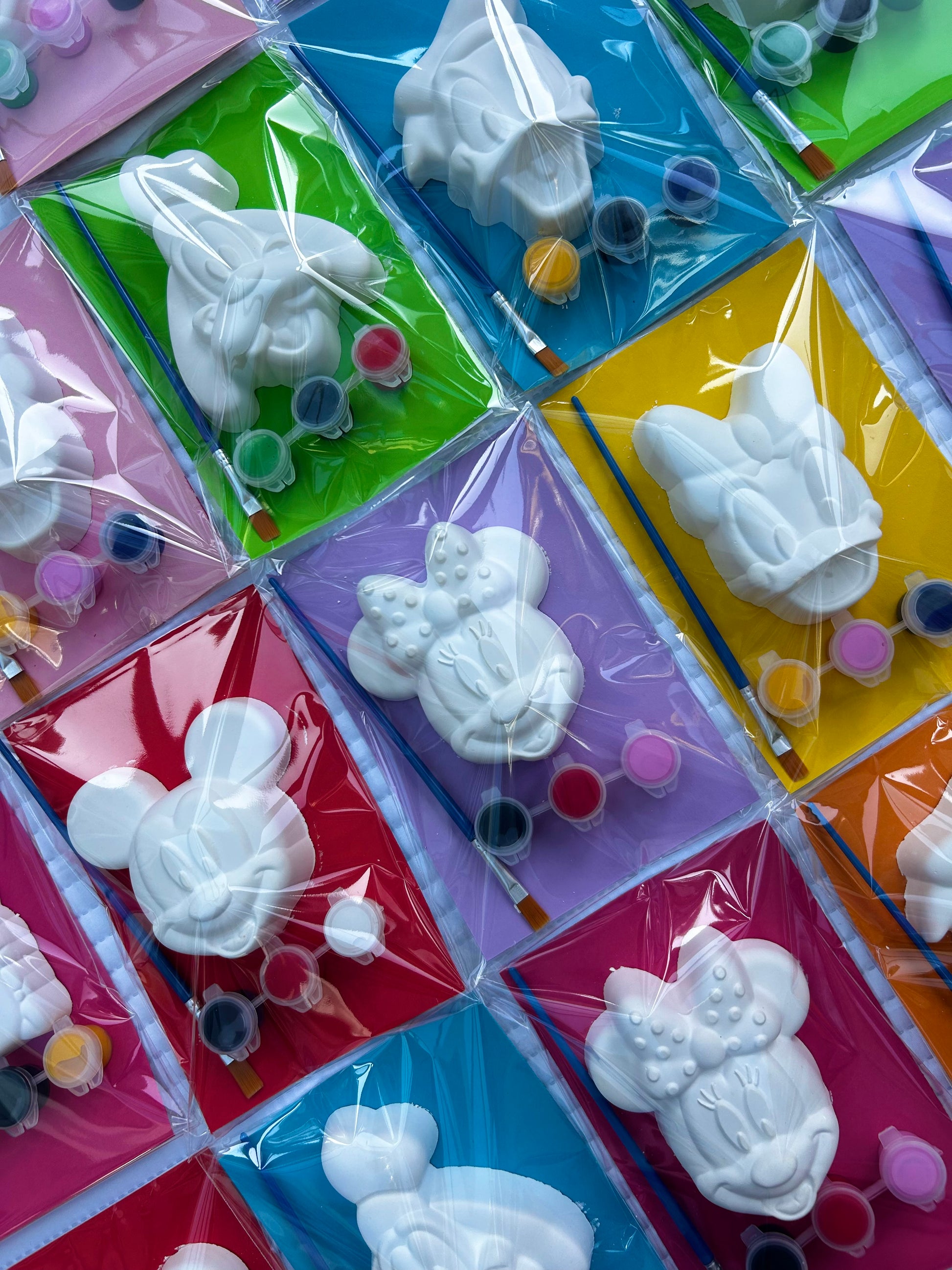 Each packed in a clear cello bag with coloured card backing to paint onto for less mess.